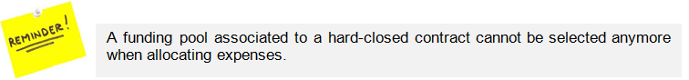 The expense codes/destinations associated to the contract’s reporting lines should also be selected in the funding pools used in the contract.