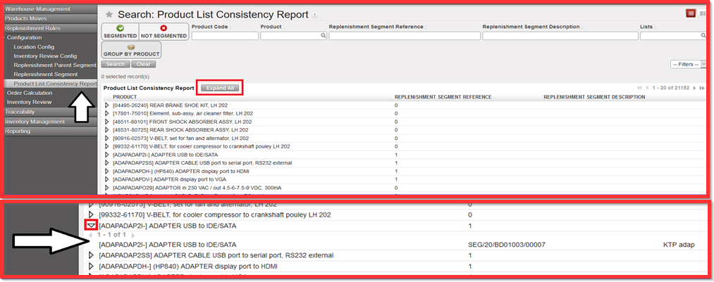 Supply User Manual ENG -> 5. Warehouse -> 5.12 LU-SU4205 Replenishment Rules -> M. HOW TO GENERATE A PRODUCT LIST CONSISTENCY REPORT
