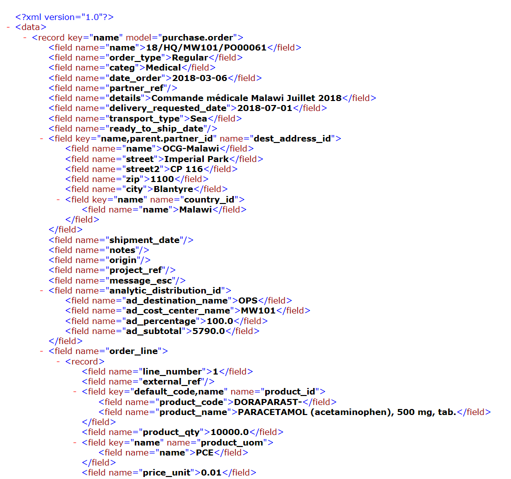| Export d’un PO validé vers un fichier XML pour IV |