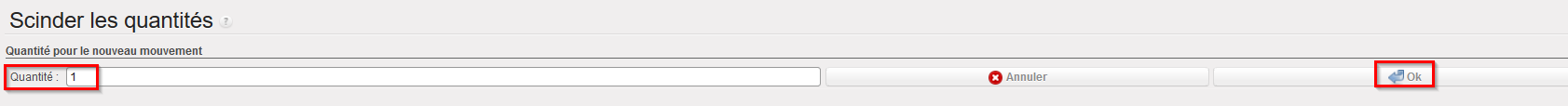 3. Splittez la ligne (si nécessaire) afin d’avoir un seul actif par ligne. Notez que vous pourriez devoir répéter cette opération plusieurs fois. L’objectif est d’avoir la quantité 1 sur chaque ligne d’actif sur le IN à traiter ![]()