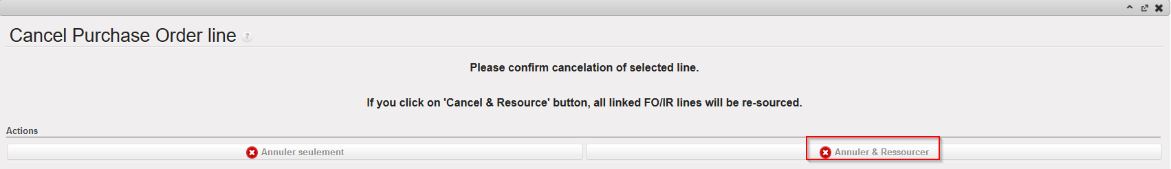Notez que l’annulation & le re-sourcing d’une ligne de PO est également possible si le PO est “Validé”. Dans ce cas, le scénario est identique mais le PO conserve le statut “Validé” tandis que la FO passe au statut “Sourced-p”
