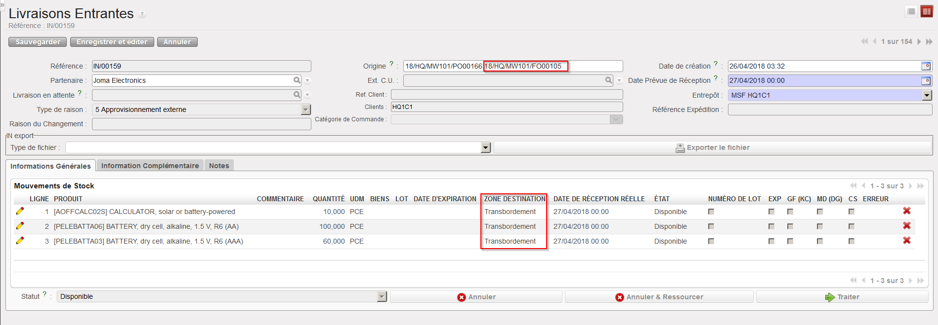 Allez à: Entrepôt / Gestion d’Entrepôt / Livraisons Entrantes