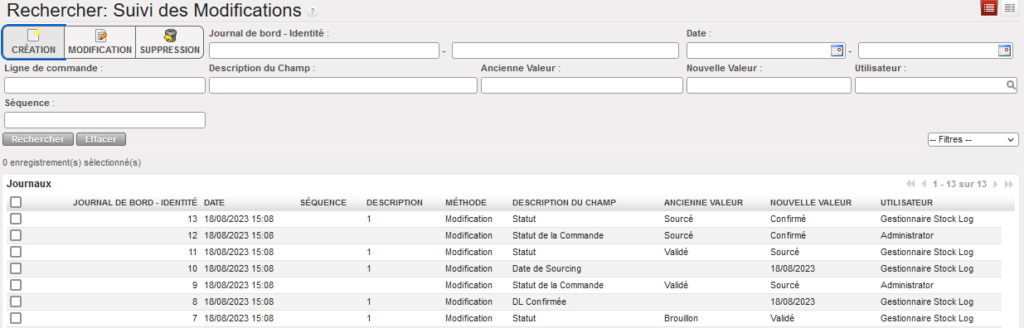 Manuel de l’Utilisateur Supply -> 1. Général Supply -> 1.5 Suivi des modifications dans UniField