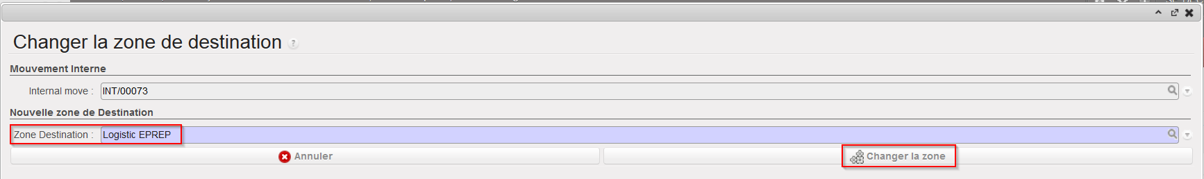 | Modification de la zone destination sur un Mouvement Interne (étape 2) |
